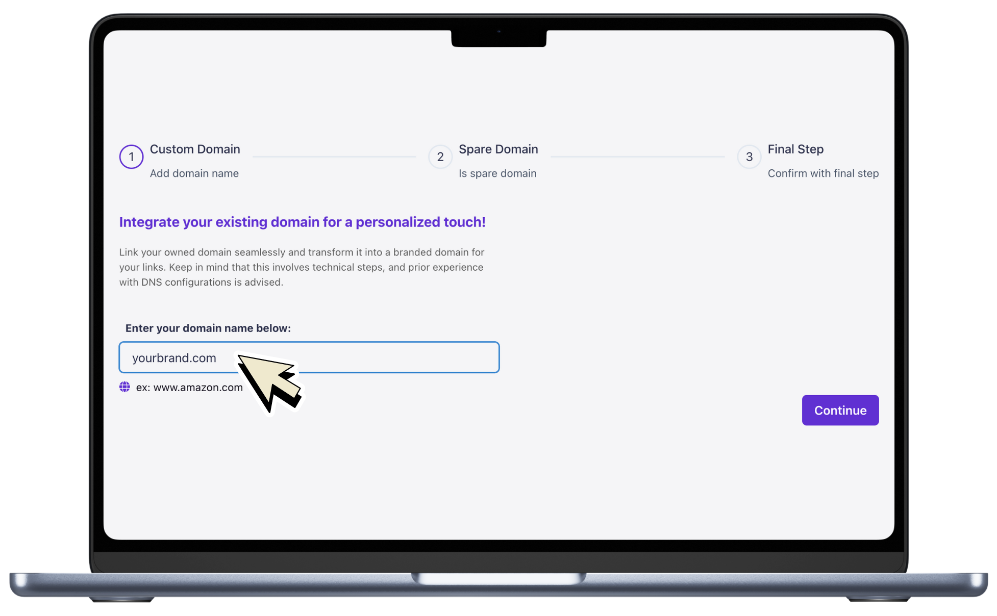 - Enter the desired subdomain name for your custom URL. For example, “go” for “go.example.com”.