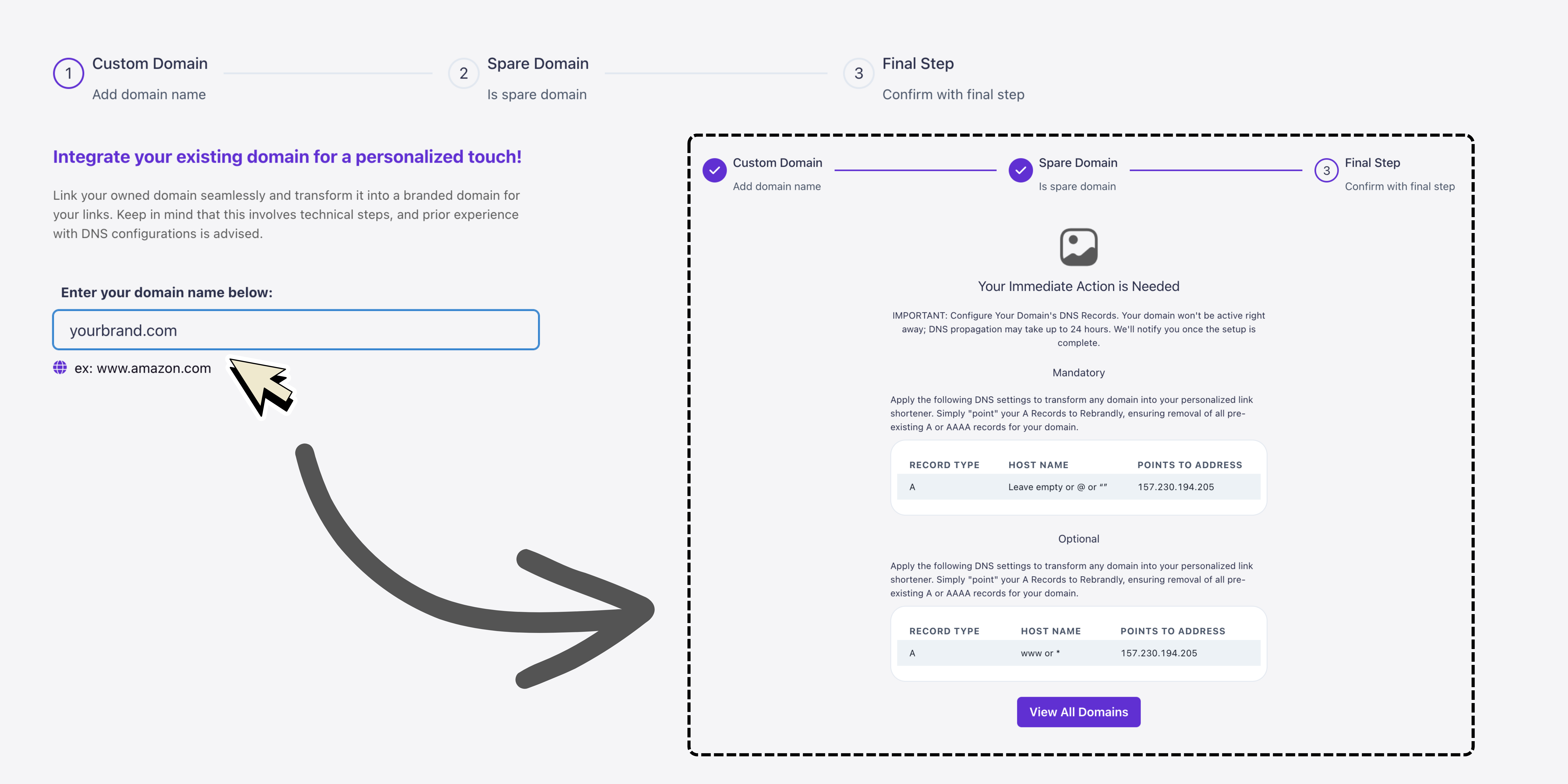 CutMeShort allows users to add custom domains for shortening URLs. This guide provides step-by-step instructions on how to add and configure a custom domain in your CutMeShort workspace.Prerequisites